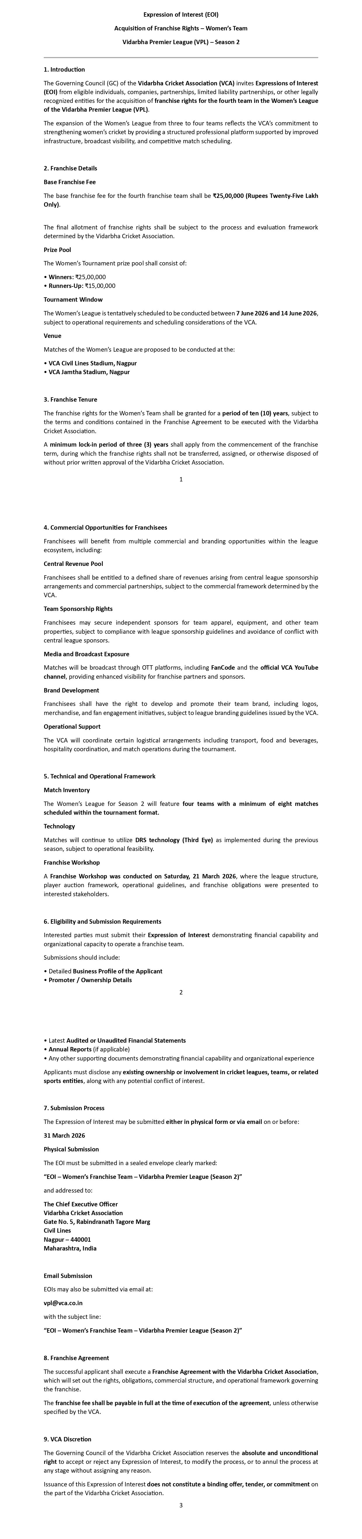 the Vidarbha Cricket Association and the Association is not responsible for the