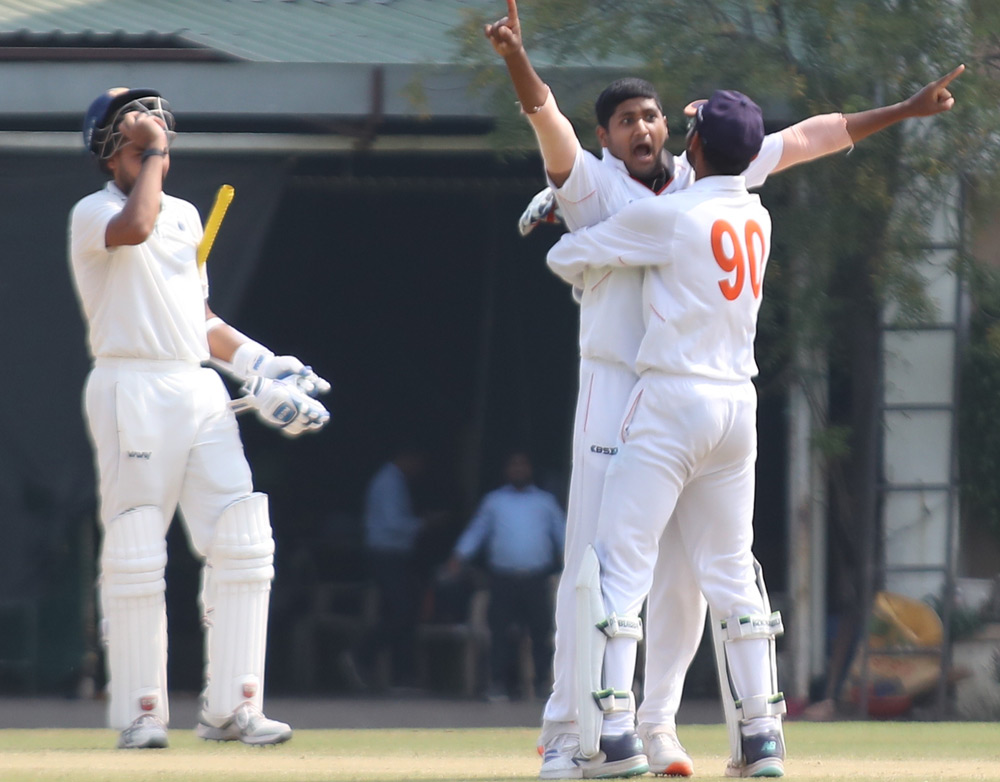 Vidarbha pacer Yash Thakur exults after dismissing the last MP batsman to signal his team’s entry into the Ranji Trophy final