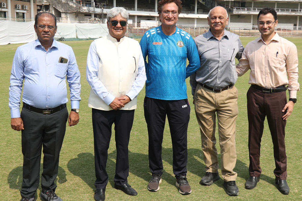 Vidarbha coach Usman Ghani (centre) poses with VCA officials (from left), Hon. Joint-Secretary Chandrakant Manke, President Justice Vinay M. Deshpande (former judge of the Bombay High Court), Hon. Vice-President Dr Avinash Deshmukh and Hon. Treasurer CA. Arjun Phatak after the match