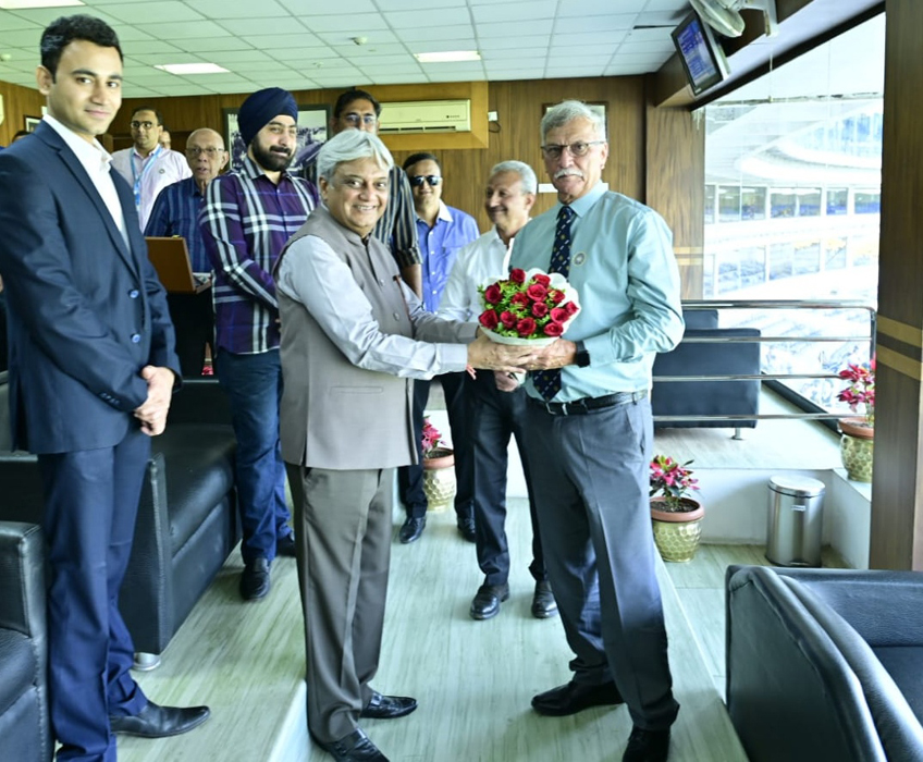 VCA Hon. Secretary Mr Sanjay Badkas and Hon. Joint-Secretary Mr Gautam Kale welcome BCCI President Mr Roger Binny and Hon. Treasurer Mr Prabhtej Bhatia to the Jamtha Stadium