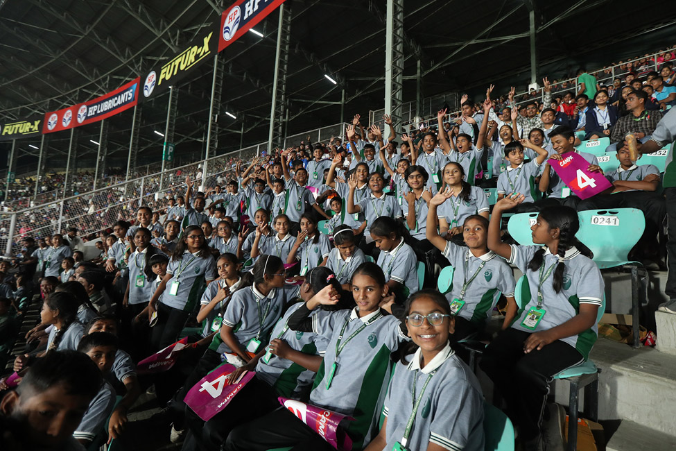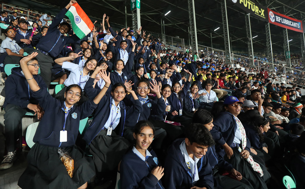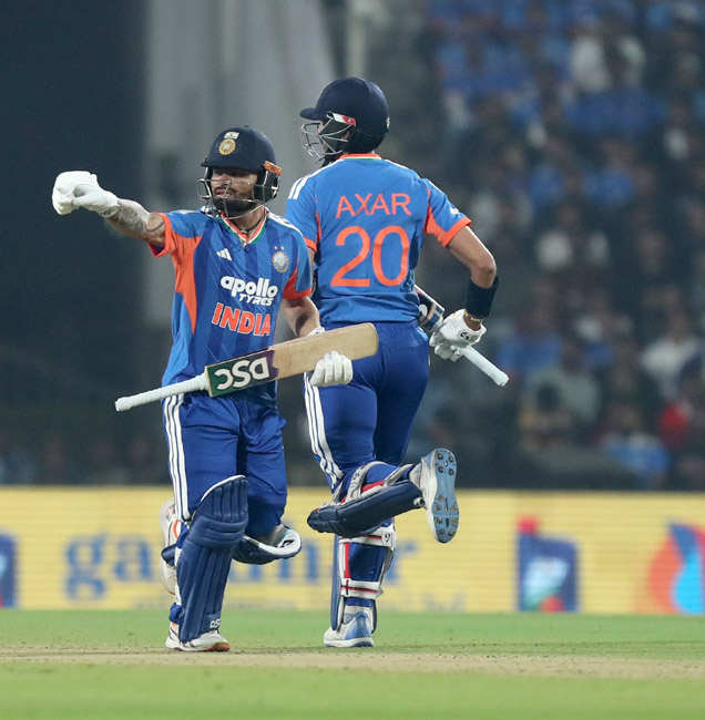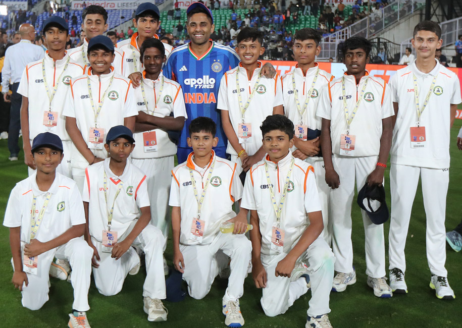 India captain Suryakumar Yadav poses with the ball boys after the match