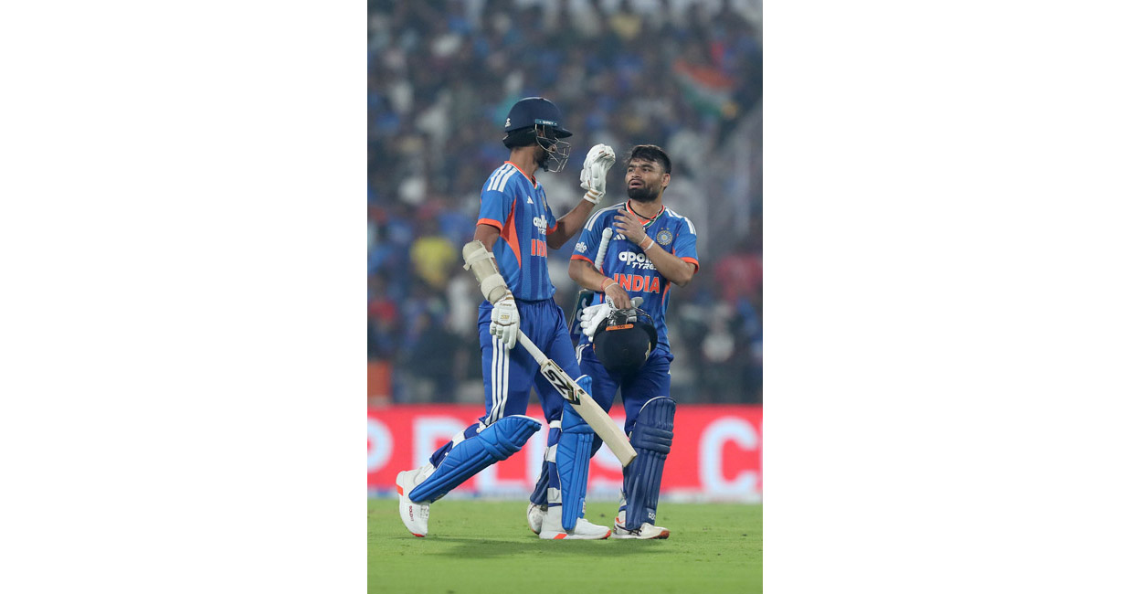 Openers, Abhishek Sharma and Sanju Samson, go out to launch the Indian innings