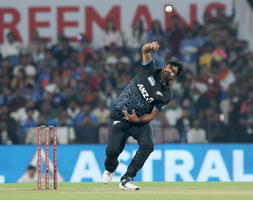 New Zealand leg-spinner Ish Sodhi in action during the Indian innings