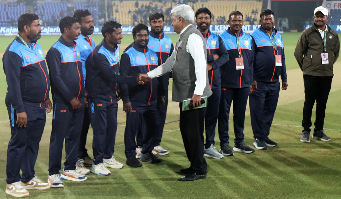 VCA President, Justice Vinay Deshpande (Retd) congratulates the groundmen