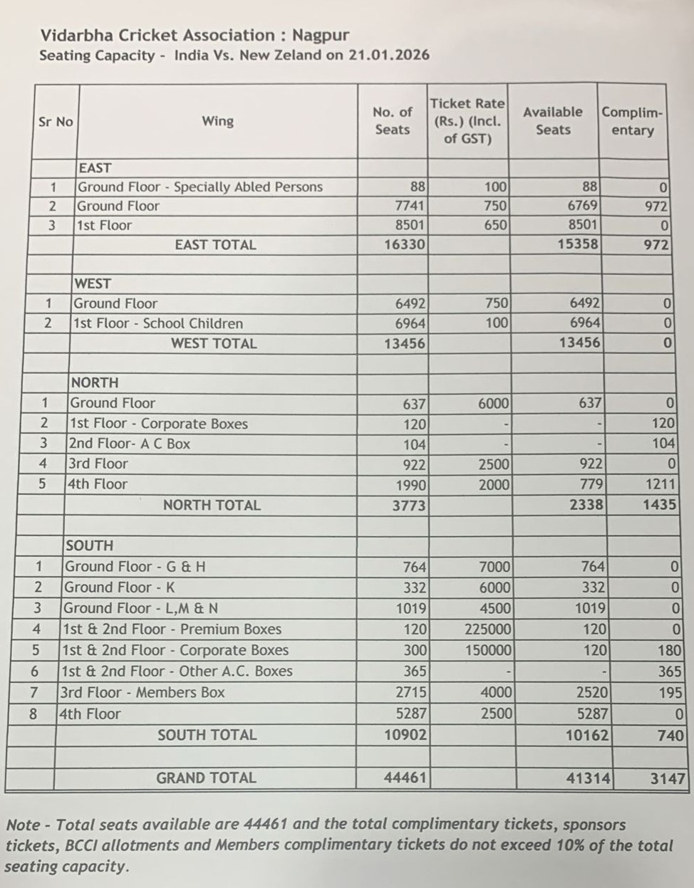 the Vidarbha Cricket Association and the Association is not responsible for the